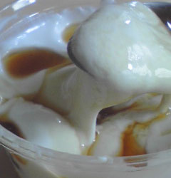 通常のジーマミ豆腐はもっと固いのですが、コレはほとんどクリーム状です。