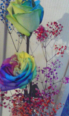 茎に細工して虹色の薔薇が咲くようになってるとかなんとか。スゴイなぁ。