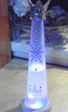 下の台は買ったらタダでついてきて、ビンを置くと七色に光る。とってもキレイです。